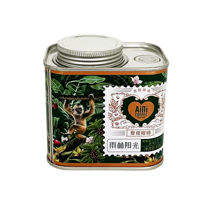 每个铁罐套上 PE 袋可避免灰尘和刮擦,罐子装纸箱或打卡板或包膜,