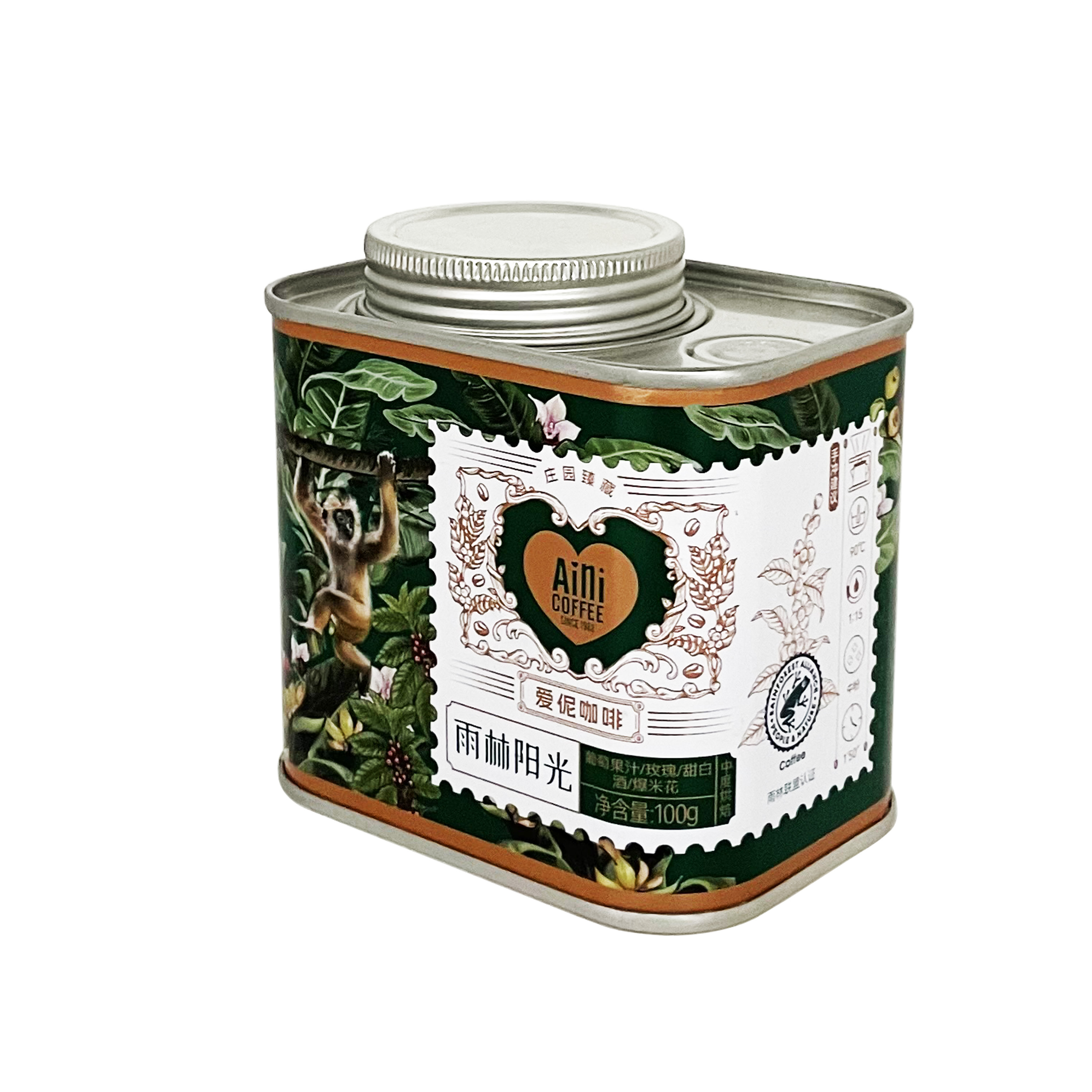 空铁罐150g方形铁罐咖啡豆,燕麦片,可可脂,坚果、种子,米,猫粮,狗粮,冻干,宠物粮。
